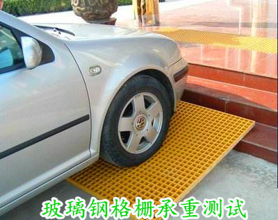 參照上圖,成品的玻璃鋼格柵板承載能力非常的優秀,能夠完完全全的承受九人座的面包車的重量。這也是為什么洗車房會采用玻璃鋼格柵板的原因之一。