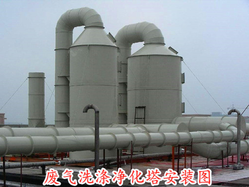 工業生產中產生的廢氣雜質最多的就是酸性腐蝕成分,在針對這類廢氣處理時,優先選擇的方式就是酸堿中和原理。在塔內,堿液與廢氣充分進行接觸并發生中和反應,再經過玻璃鋼離心風機通風,從而達到除去酸霧的目的。