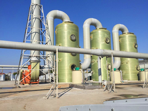 市場上玻璃鋼噴淋塔指的是使用玻璃鋼材料制作而成,通過噴淋的方式使吸收液與廢氣進行接觸,達到凈化廢氣中有害成分目的的塔體。下圖就是一些玻璃鋼噴淋塔安裝效果圖