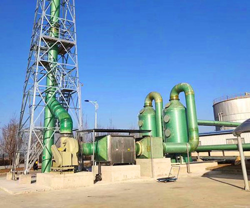 從上圖中我們可以看出,玻璃鋼噴淋塔在使用時都是與風機、管道以及其它設備搭配進行使用的。
