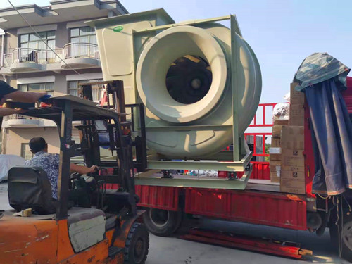 作為廢氣處理系統(tǒng)中非常關(guān)鍵的設(shè)備之一,玻璃鋼離心風(fēng)機(jī)是主要的輸送設(shè)備,在工作時(shí)風(fēng)機(jī)的葉輪高速轉(zhuǎn)動(dòng)。風(fēng)機(jī)的型號(hào)越大,單位時(shí)間內(nèi)產(chǎn)生的風(fēng)量也越大,同時(shí)風(fēng)機(jī)的體積也越大。下面是一些大型玻璃鋼風(fēng)機(jī)的運(yùn)輸裝卸圖。