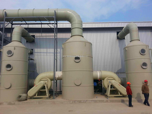 通常我們將一些直徑偏大的玻璃鋼管件類產品成為玻璃鋼管道,通常被用來輸送氣體、污水或電纜保護。不同類型的管道外觀類型和性能特點也不相同,如用來輸送氣體的管道在使用時是與玻璃鋼離心風機和廢氣塔連接在一起的,大多使用纏繞工藝進行制作。而電纜保護管道直徑相對要小一些,通常使用拉擠工藝進行制作。下面是一些玻璃鋼管道的使用圖展示。