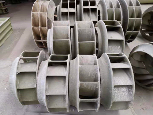 b、玻璃鋼離心式風(fēng)機(jī)的葉輪不是一次性成型的,需要單獨制作葉片、底盤、頂蓋等配件。在制作時需要確保個配件徹底固化之后再進(jìn)行組裝工作。