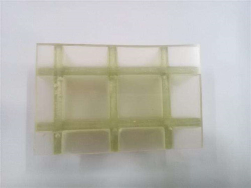 制作透明顏色的格柵板,樹脂必須選擇質量較好,純度高的樹脂種類;如常規的間苯樹脂就無法滿足使用要求,色澤渾濁,一般使用間苯樹脂或乙烯基專用樹脂。其中乙烯基樹脂也是本公司生產的玻璃鋼離心式風機的葉輪使用的主要原材料。